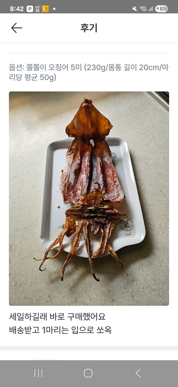 저녁먹고 바로 한 마리 먹었는데, 쫄깃하니 맛있어요. 굽지않아도 되니 편하고요 다 먹으면 재주문 예정이에요