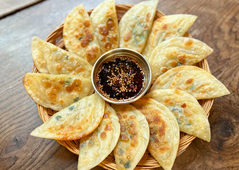 얇은 만두피 속에 부추와 당면을 가득 채운 정통 대구식 납작만두입니다. 두께가 얇고 바삭바삭한 식감과 담백한 맛으로 부담 없이 계속 들어가는 마성의 만두랍니다.