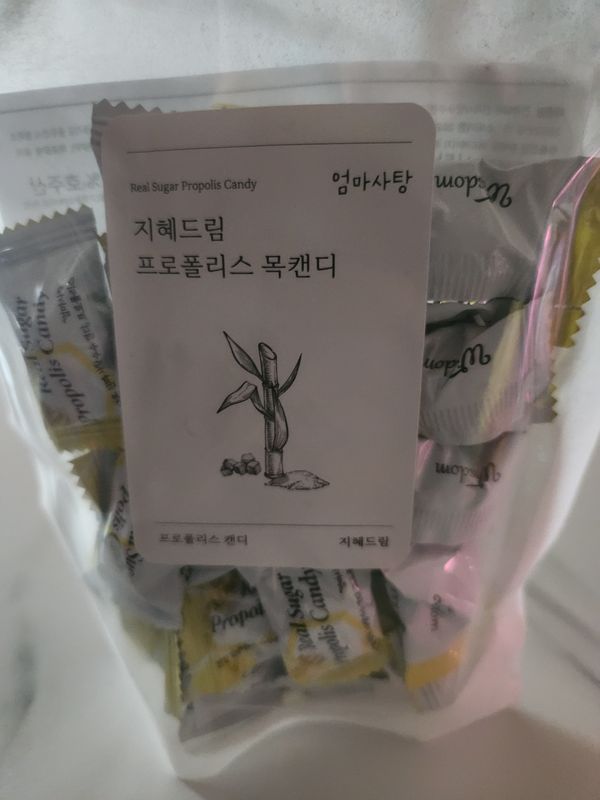 아이가 알레르기성 비염인데 프로폴리스 액체는 싫어하더라구요 그래서 사탕을 구매해봤는데 아무소리 없이 먹네요^^ 많이 달지 않고 프로폴리스 특유의 향은 있는데 별 거부감 없이 먹게 되는것 같아요 괜찮네요 다 먹어보고 또 구매해야겠어요