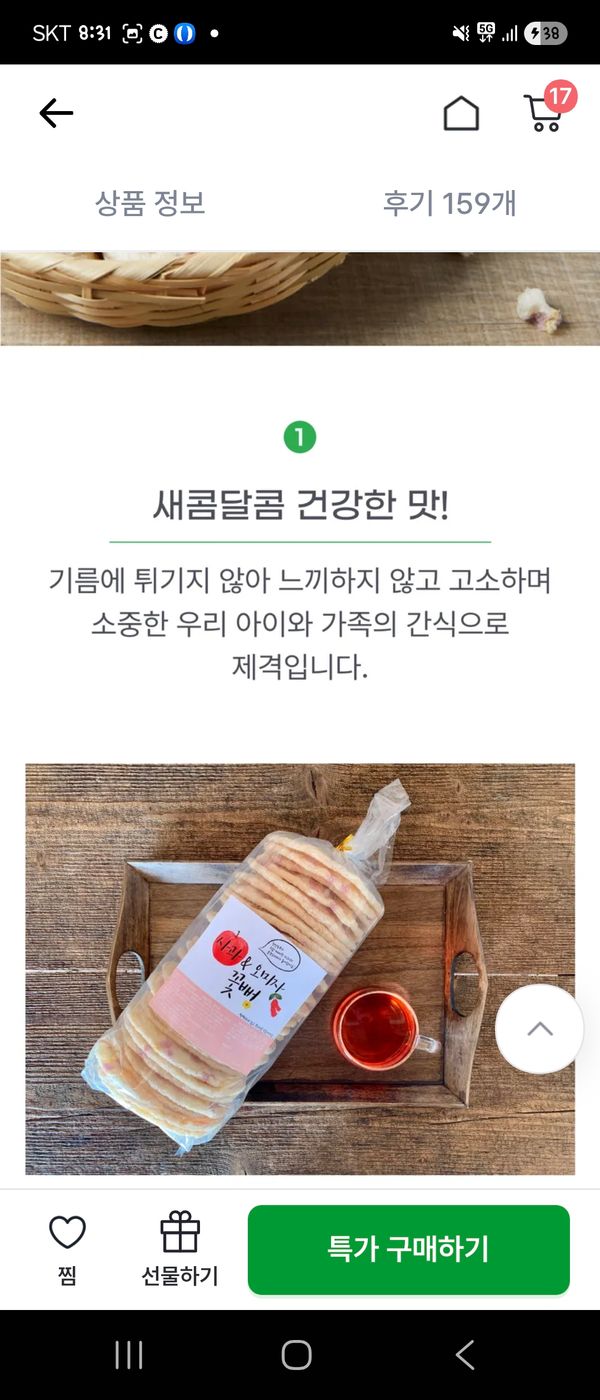 접시모양 뻥을 주문했는데 잘못 했는지 꿏뻥이 와서 놀랐네요. 가격은 많이 비싼편이고 양도 적은편이지만 식감은 부드럽네요. 사과랑 오미자가 들었다던데 그닥 맛이나 향이 나진 않고 좀 달아서 전 좀 아쉽단 생각이 크네요.아기들이 먹기엔 좋을 것 같아요.