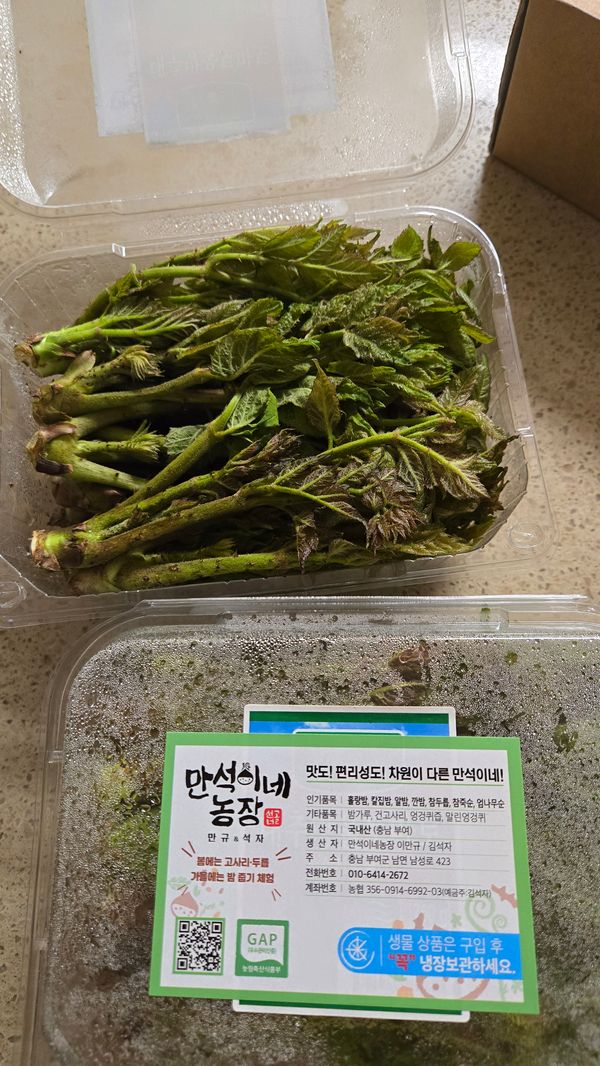 내가좋아하는 가죽나물 맛나게 먹고 있어 요 싱싱하고 향도 좋고 양도많아요 사장님 끝맛이 흙냄새 나는것이 맞춰??