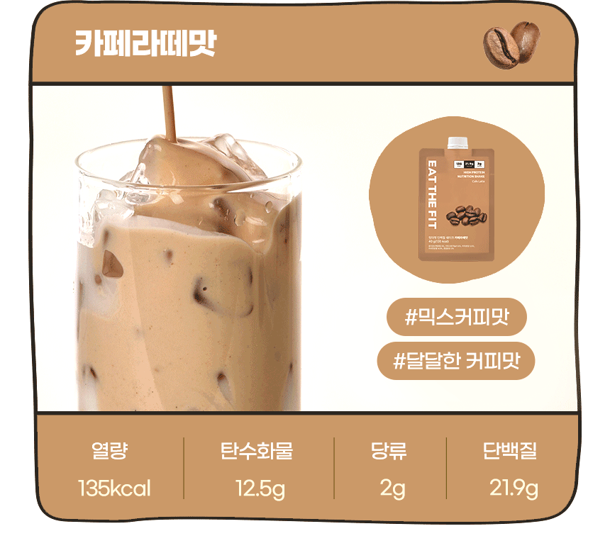 카페라떼의 부드러운 원두 맛을 느낄 수 있는 단백질 쉐이크