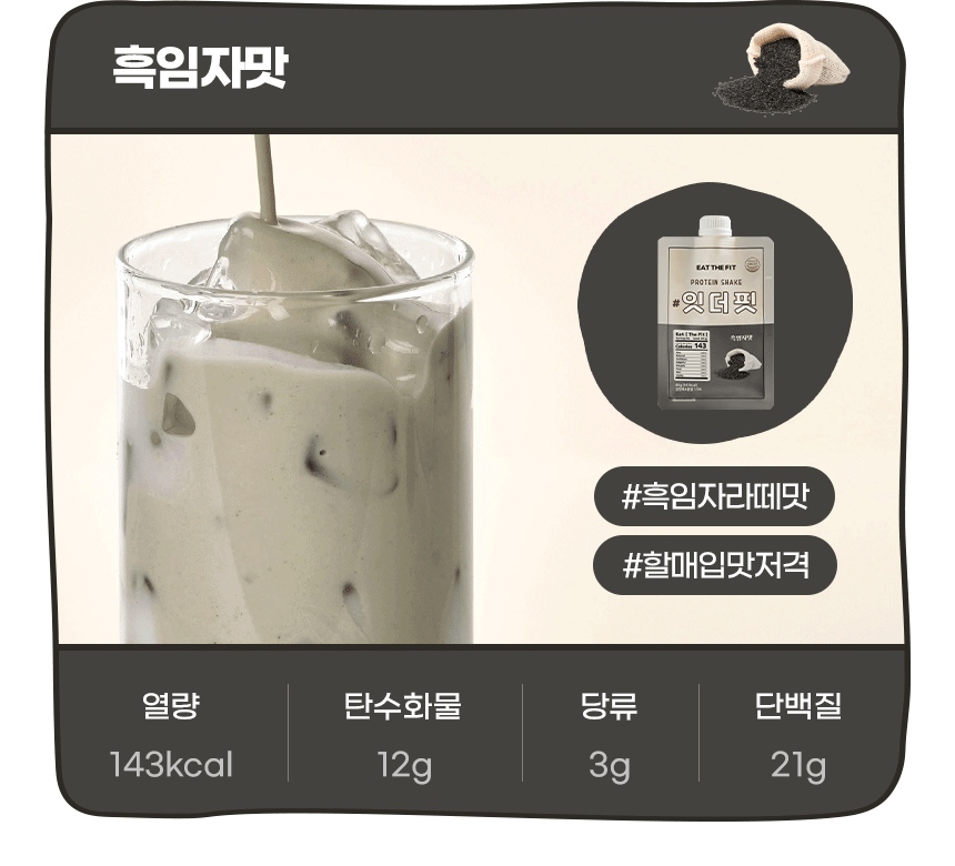 흑임자라떼 맛을 느낄 수 있는 단백질 쉐이크