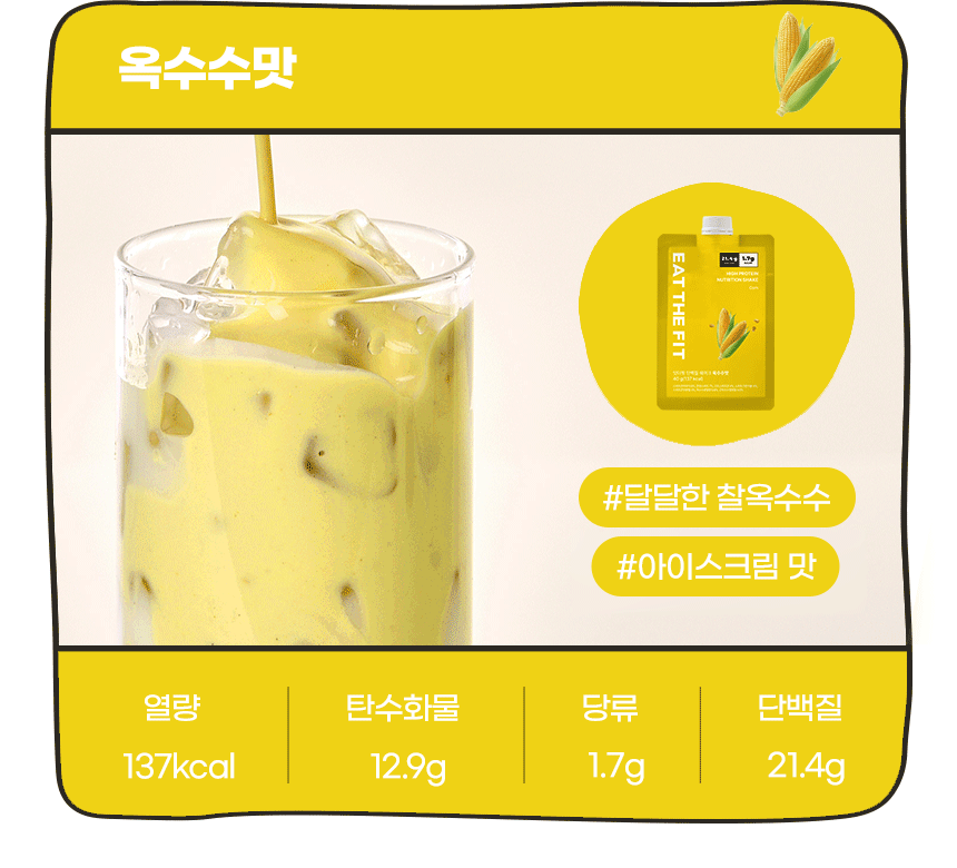 입안 가득 구수한 옥수수의 풍미를 가득 느낄 수 있는 단백질 쉐이크