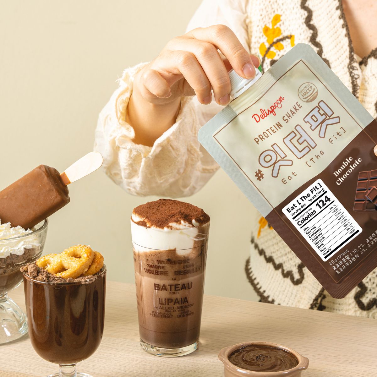 진한 초코 맛을 느낄 수 있는 단백질 쉐이크
