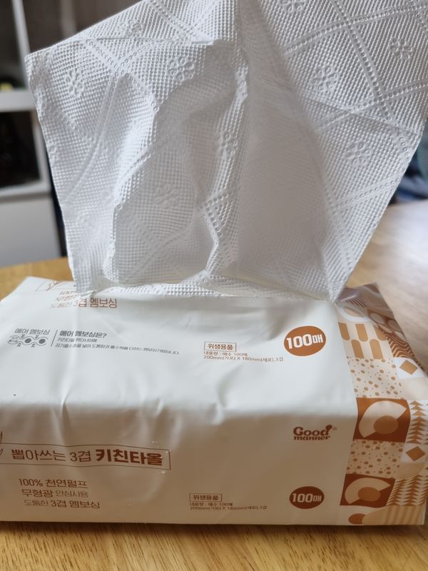 상품 잘받았어요 일단 뽑아쓰는 키친타올이라서 편리해서 넘 좋아요 사이즈가 조금 더 컷으면 하는 아쉬움이 있답니다.