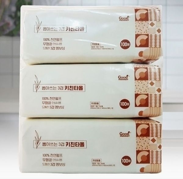 옵션: 굿매너 뽑아쓰는 키친타올 3겹 (100매× 9팩)