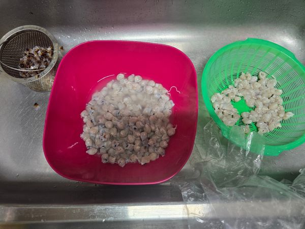 완전 날것입니다. 그리고 꼭 잘 씻어서 먹어야겠어요. 씻다 보니 잔 모래들이 많이 나오더라고요. 저는 네 다섯 번 씻은 후 입을 떼어 내고 좀 더 말려서 먹으려고 합니다. 싱싱하긴 하네요~^^
