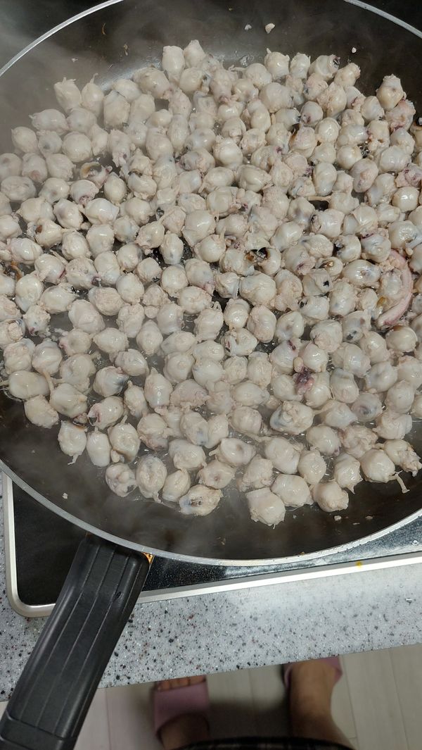 약간 반건조(?) 정도로 배송될줄 알았는데..너무 물기가 많아서 채반에 올려서 주방 창가 바람 쏘이면서 키친타올로 닦아가면서 하루정도 말려서 후라이팬에 볶았어요..맛은 괜찮았어요.