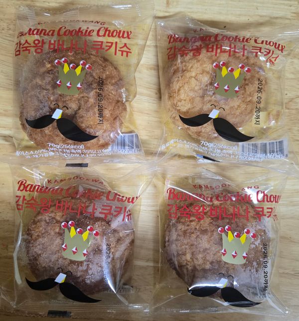 바나나 쿠키슈 냉동보관후 바로 꺼내 먹으니 속의 슈가 아이스크림 같고 바나나향이 짙어서 바나나 좋아하는 사람들에겐 간식으로 딱일듯 합니다~