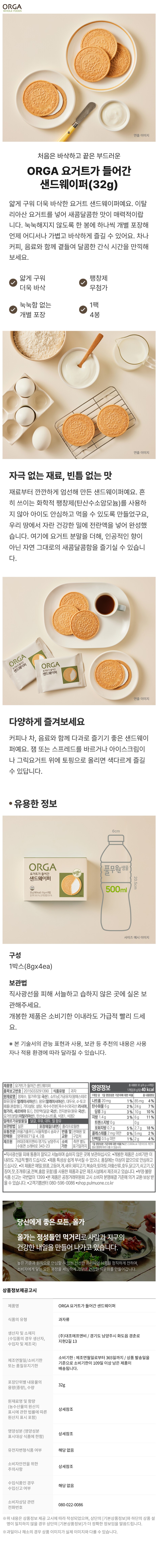 [올가] 요거트가 들어간 샌드웨이퍼 (32g) 6개