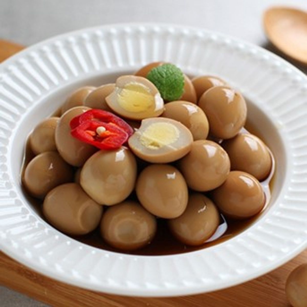 국내산 메추리알을 사용하여 더욱 고소하고 맛있습니다. 부드럽고 탱글한 식감을 유지하기 위해 적정 온도로 삶아 간장에 푹 재웠답니다. 오래 보관해도 촉촉한 비결이에요! 탱글탱글 부드러운 식감이 아주 일품이랍니다👍
