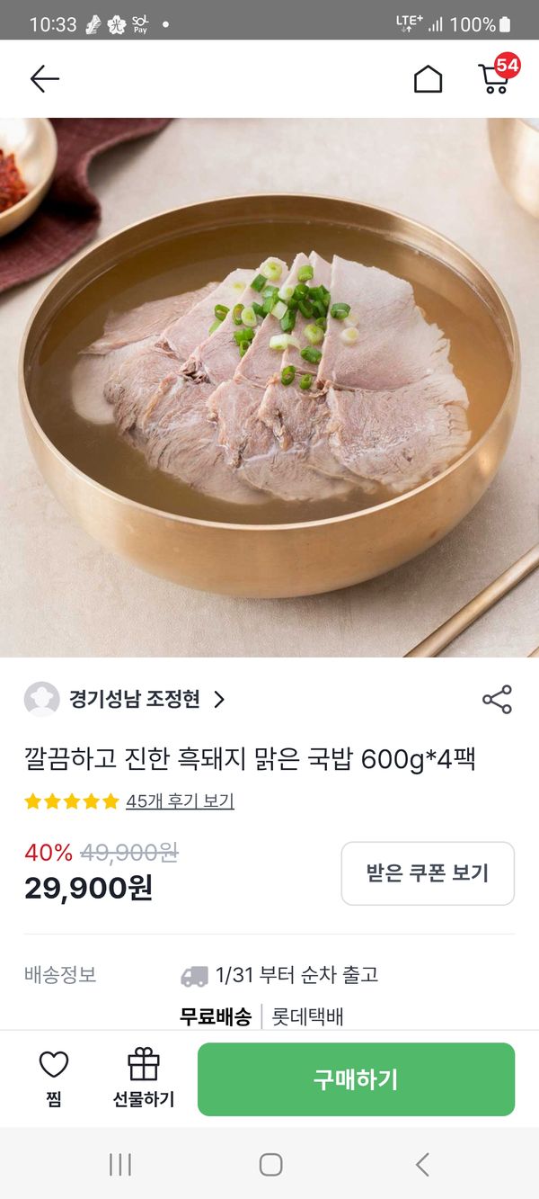 옵션: 깔끔하고 진한 흑돼지 맑은국밥 600g*4팩