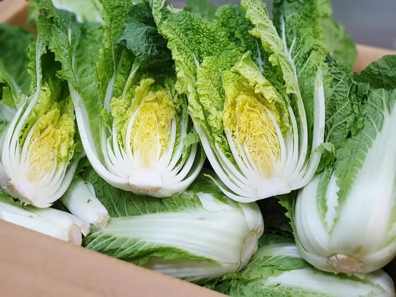 청방배추(단배추)는 품종 특성상 푸른 잎이 많고 섬유질이 풍부해 일반 포기배추보다 단맛과 고소한 맛이 좋습니다.