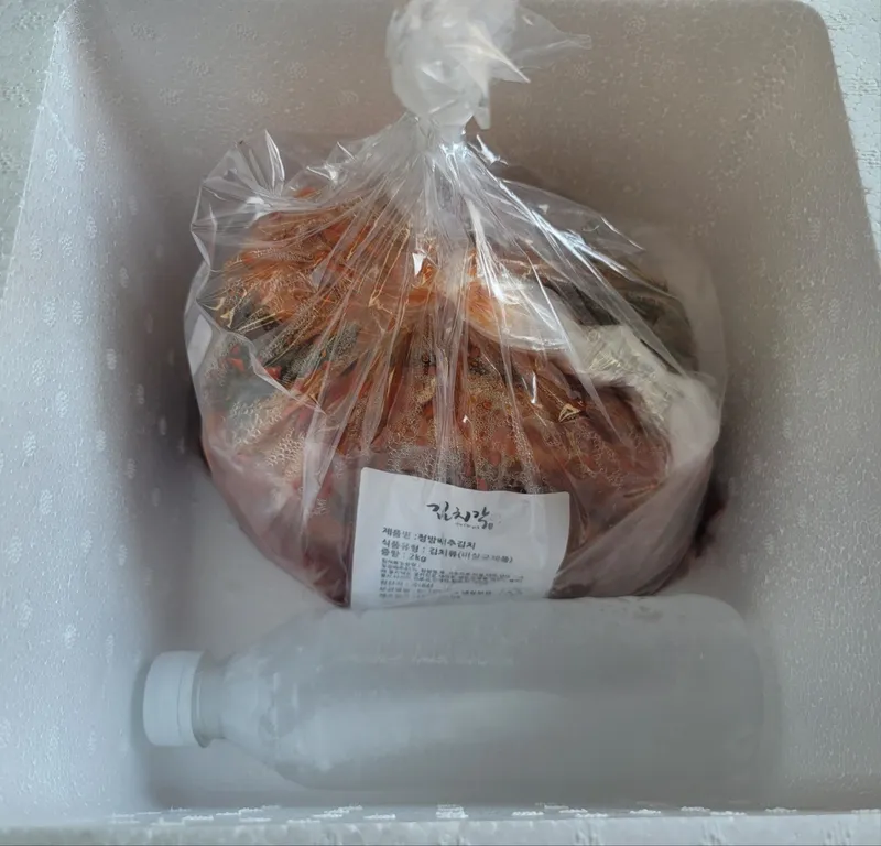 김치 국물이 새지 않도록 이중 비닐포장하여 보내드립니다.