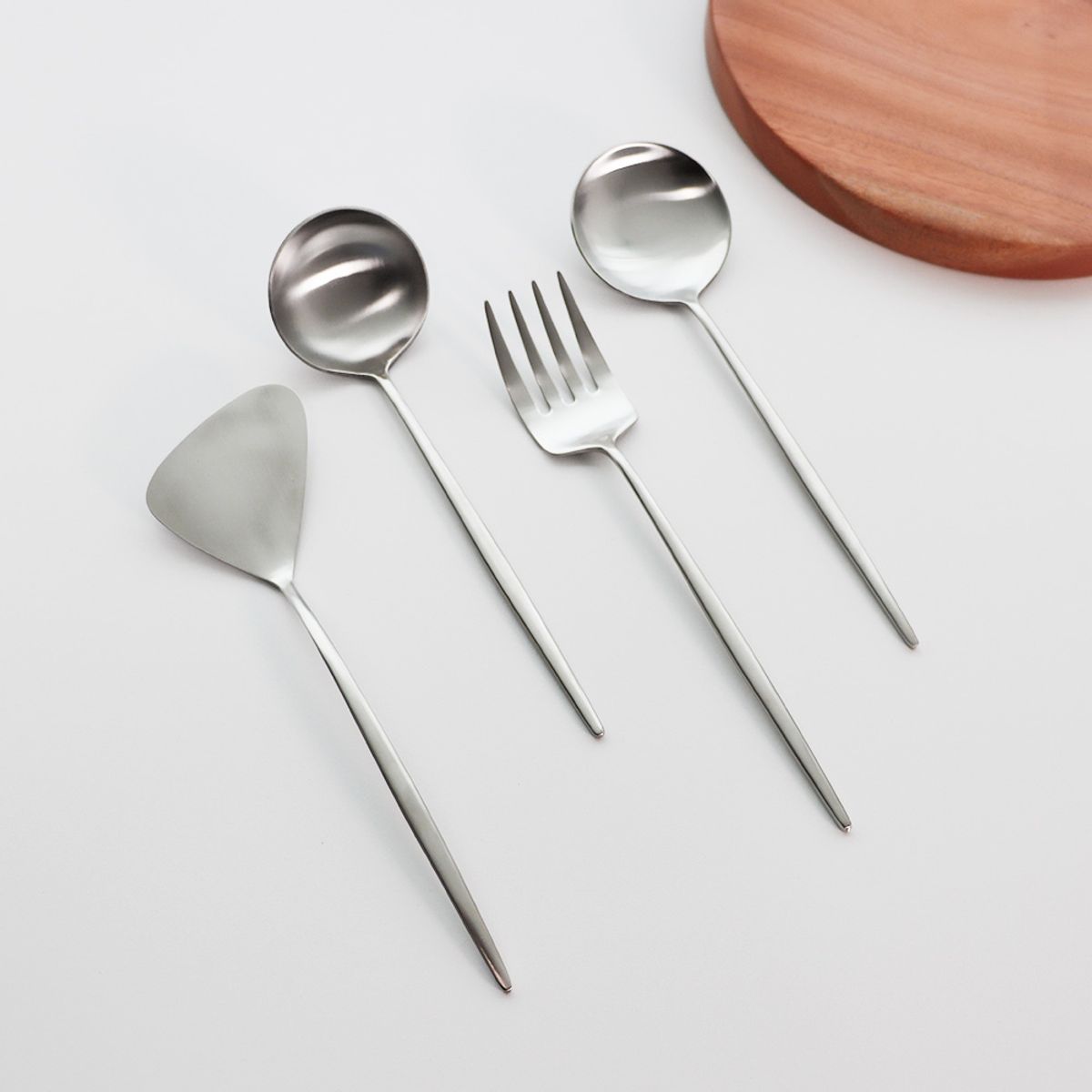 플리비체 국내산 스텐304 조리도구 4종 세트 (미니국자+요리스푼+네발포크+뒤집개중)