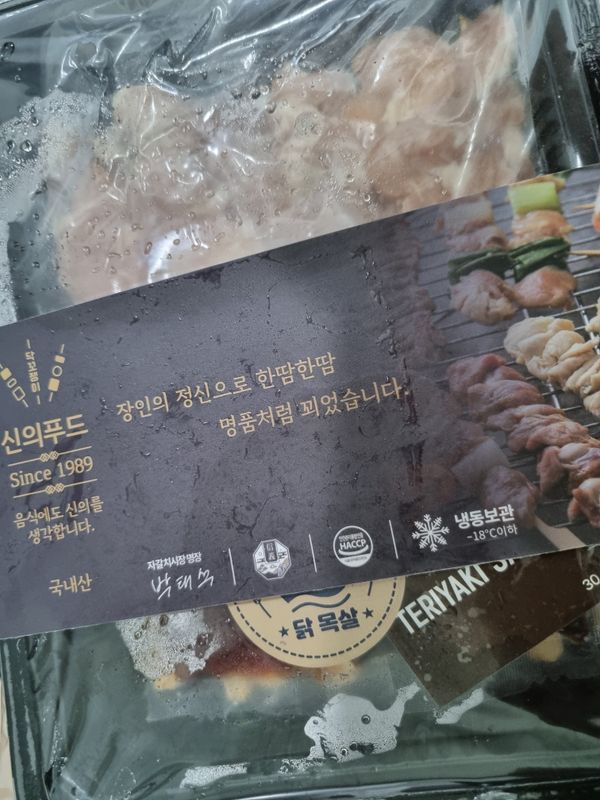 토요일 캠핑에 가서 먹으려고 주문했어요~ 녹아서 오긴 했는데 바로 얼렸거든요~ 괜찮겠죠?? 닭 살이 큼지막하니 좋아보여요~!!