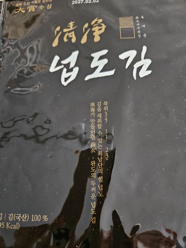 넙도김 두툼하고 빠삭하고 맛있어요 맘에쏘옥듭니다 김비린맛도없어요 이렇게 맛나서 수출도 하나봅니다 배송빠름 포장상태 아주 고급져요 재구매의사있음