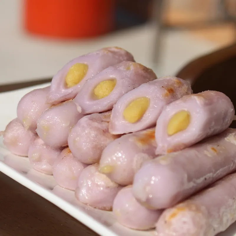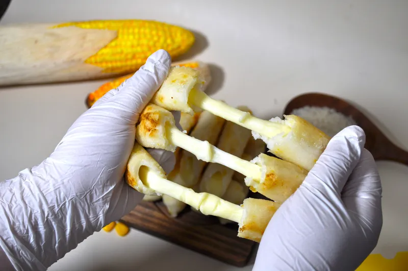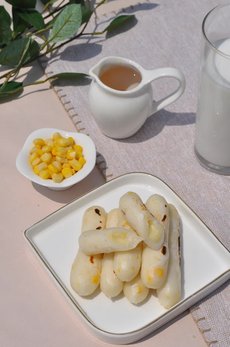 달콤한 옥수수 앙고와 고소한 치즈가 어우러지는 달콤 고소한 옥수수 치즈 가래떡이에요.