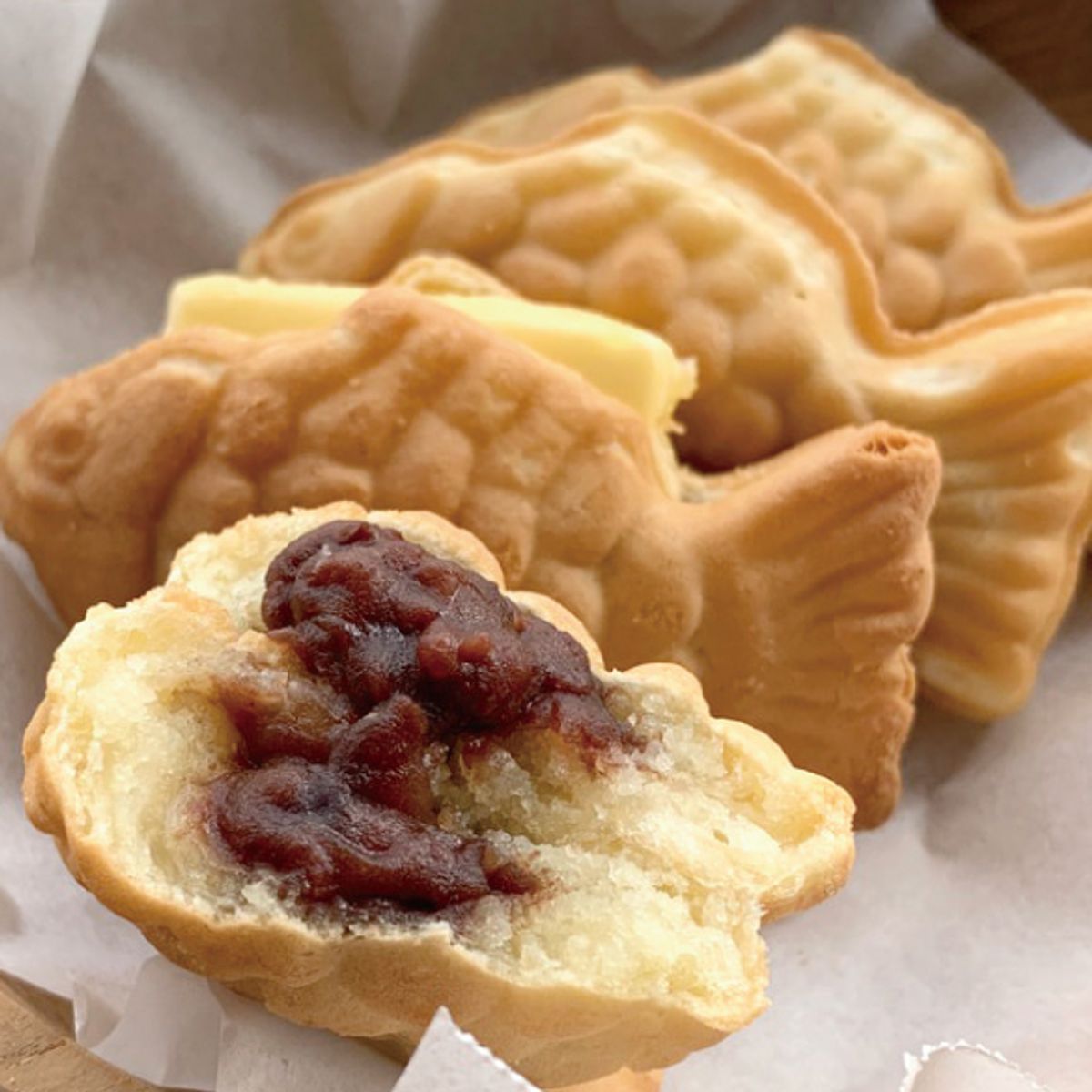 바삭한 붕어빵 안에 앙금이 머리부터 꼬리까지 가득 차 있습니다. 저희만의 차별화된 반죽피로 만들어 겉은 바삭하고 속은 촉촉한 식감이 아주 좋습니다!
