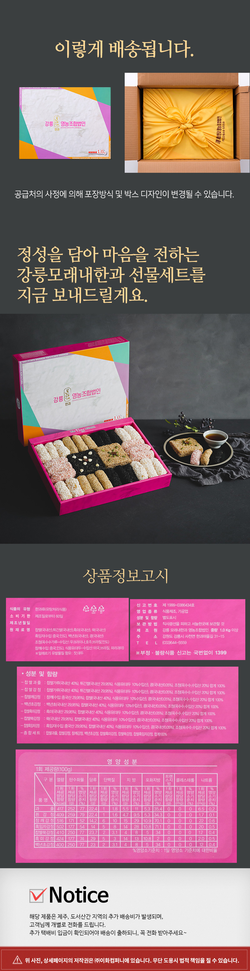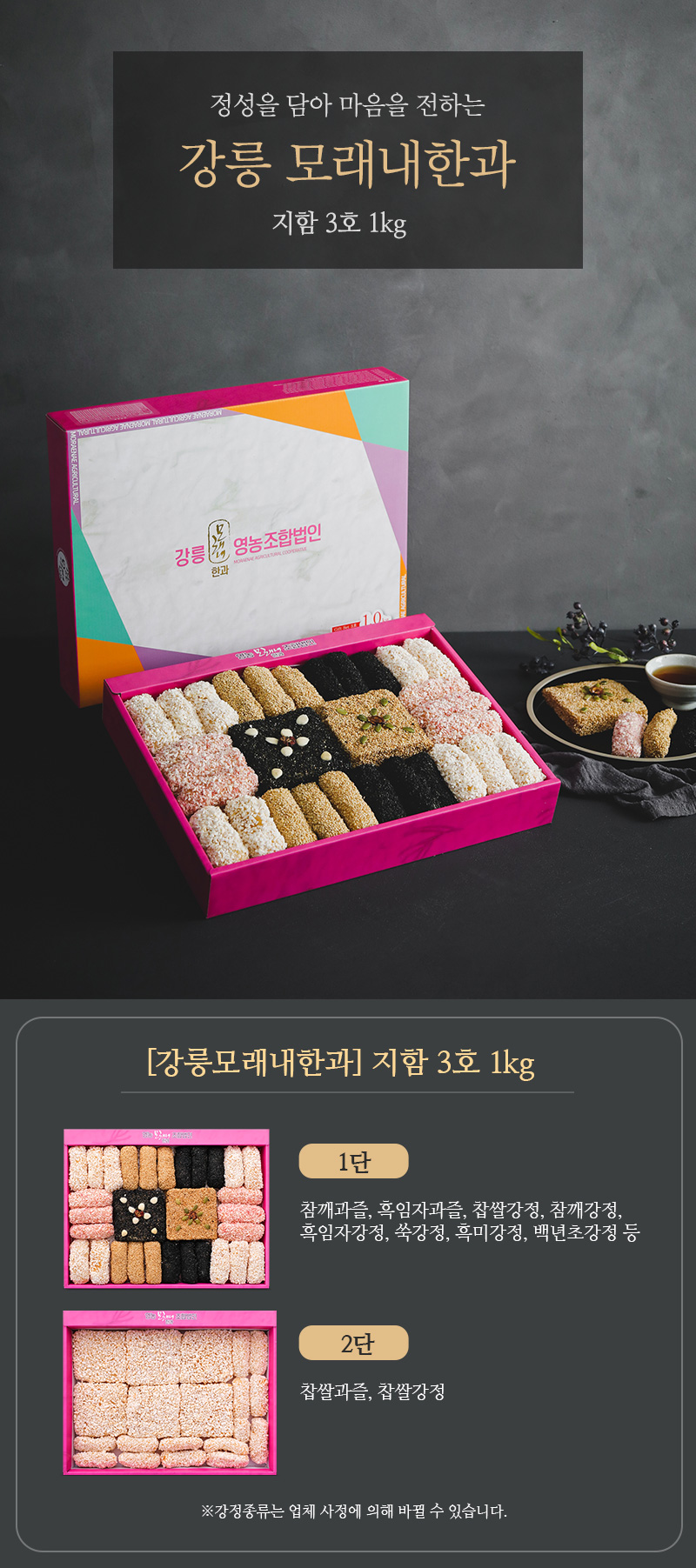 [강릉모래내한과] 강릉사천 모래내한과 찹쌀 강정 과즐 선물세트 (지함3호)2단 1kg