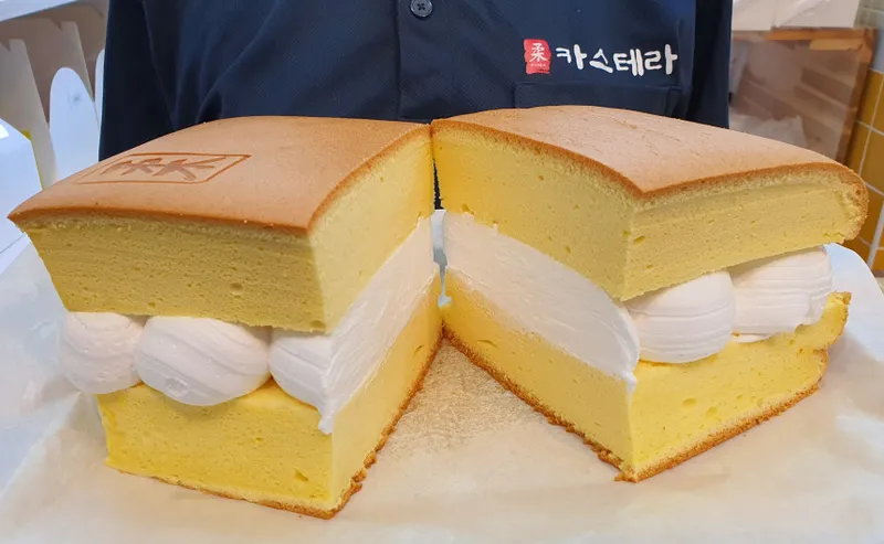 오리지널 카스테라 속에 달콤한 생크림이 가득해요. 한입 베어 물면 입에서 부드럽게 녹아 사라져요.