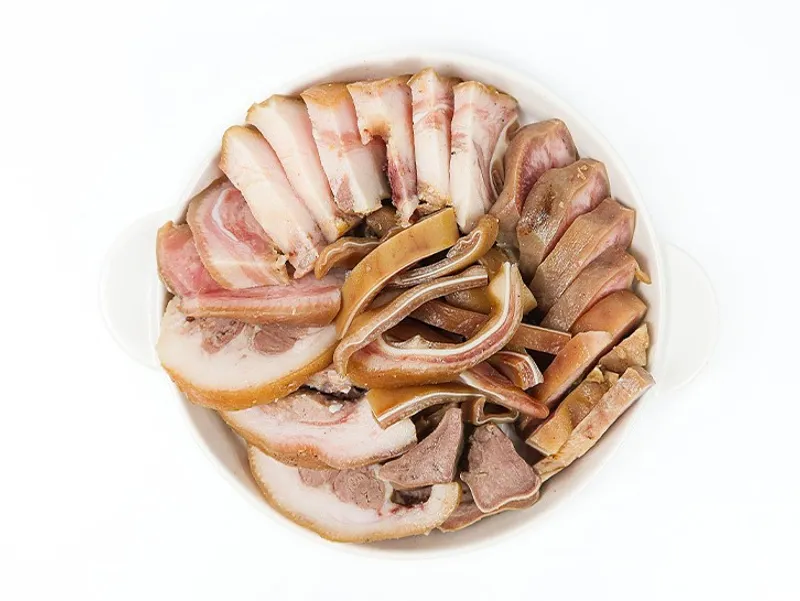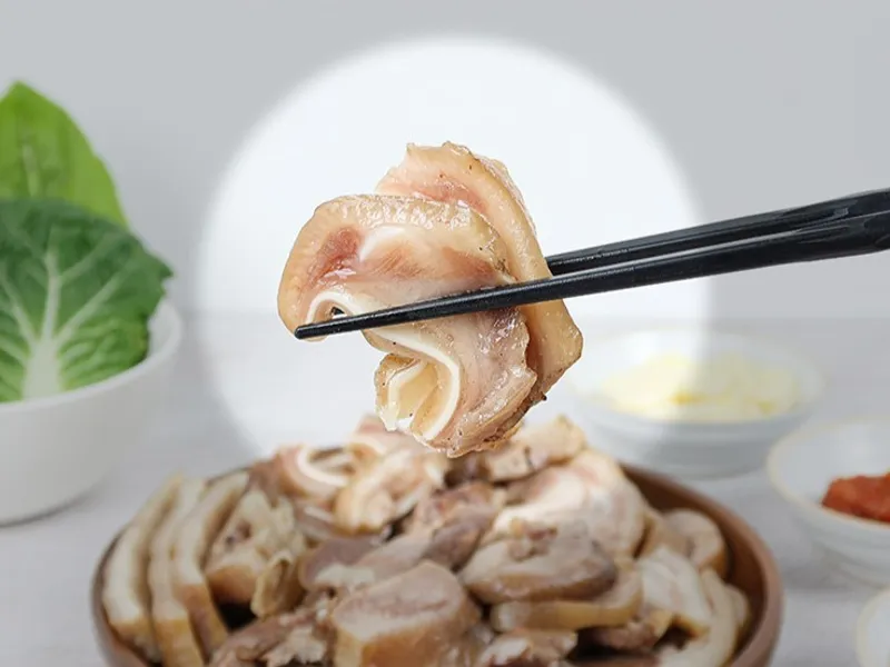 귓살, 돈설(혀), 콧등살, 항정살까지! 머릿고기 중에서도 고소하고 쫀득한 부위만 골라 한방 재료와 함께 정성껏 삶았습니다. 씹을수록 고소한 풍미와 탄력 있는 식감을 느낄 수 있어요.