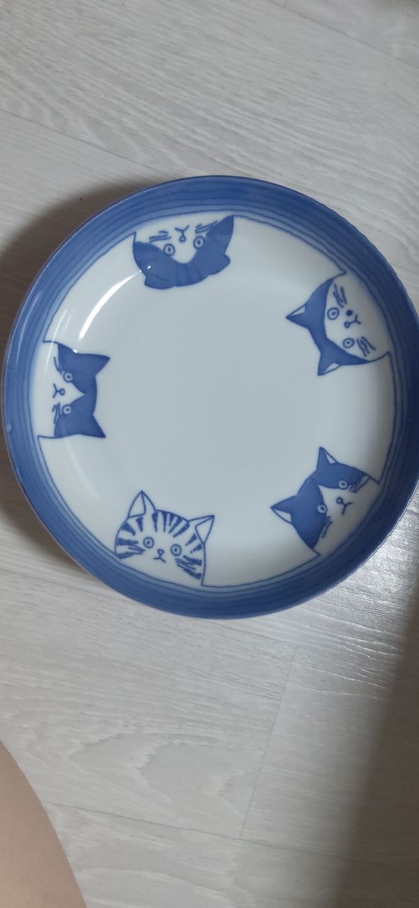 고양이가 귀엽고 이쁜 접시에요 어떠한 음식을 담아도 기분 좋게 먹을 수 있어요. 고양이 그림마다 얼굴이 다르고 귀여워요