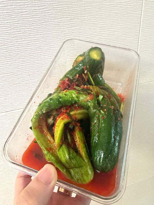 통오이소박이를 받자마자 먹어봤는데 그래도 맛있어요 실내에서 익혀가며 먹으니 더 맛있어지더라구묘~~