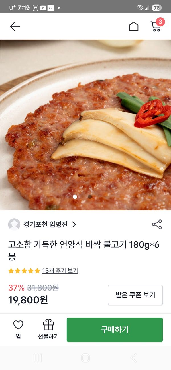 옵션: 고소함 가득한 언양식 바싹 불고기 180g*6봉