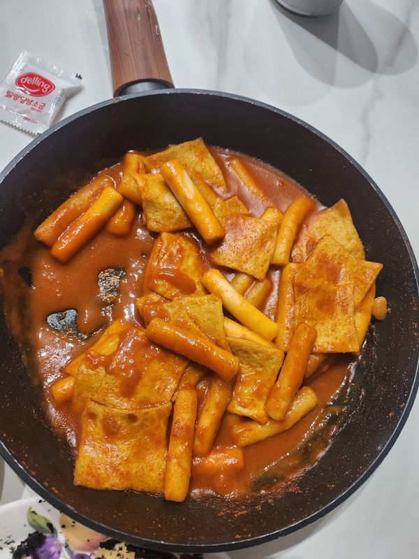 밀떡의 쫀득한맛을 좋아해서 시켜봤는데 뻑뻑? 굳은떡식감이였어요 매워서 좋은데 어묵두 별루고 ...수출하는거 같던데 저희에겐 아녔네요ㅠㅠ
