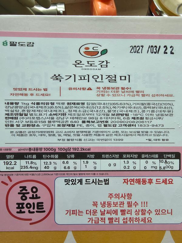 저희 엄마가 넘 맛있다고 하루에 12갤 드셨어요ㅎ많이 달지않고 쑥향도 좀나고 말랑말랑해요