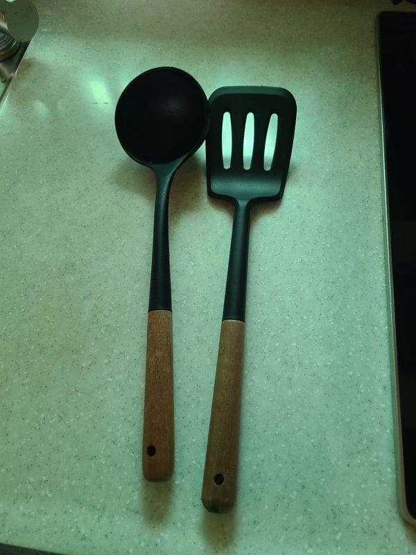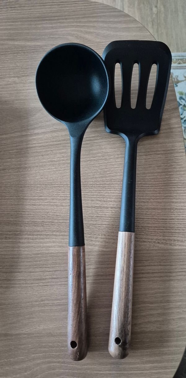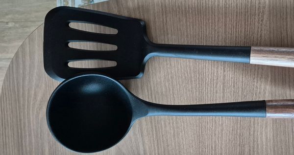 느와르 블랙 실리콘 우드핸들 조리도구 2종세트 (국자+뒤집게)
