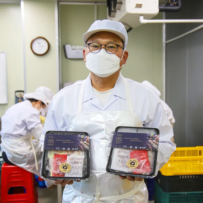 부산에서 닭고기 가공 공장을 운영하는 박태석입니다. "음식에도 신의를 생각합니다" 라는 마음가짐으로 생산에 임하고 있습니다. 오직 국산 닭 원육을 사용하여 믿고 드실 수 있습니다. 꼬치와 어울리는 소스도 증정해드리니 맛있게 드세요. 감사합니다.