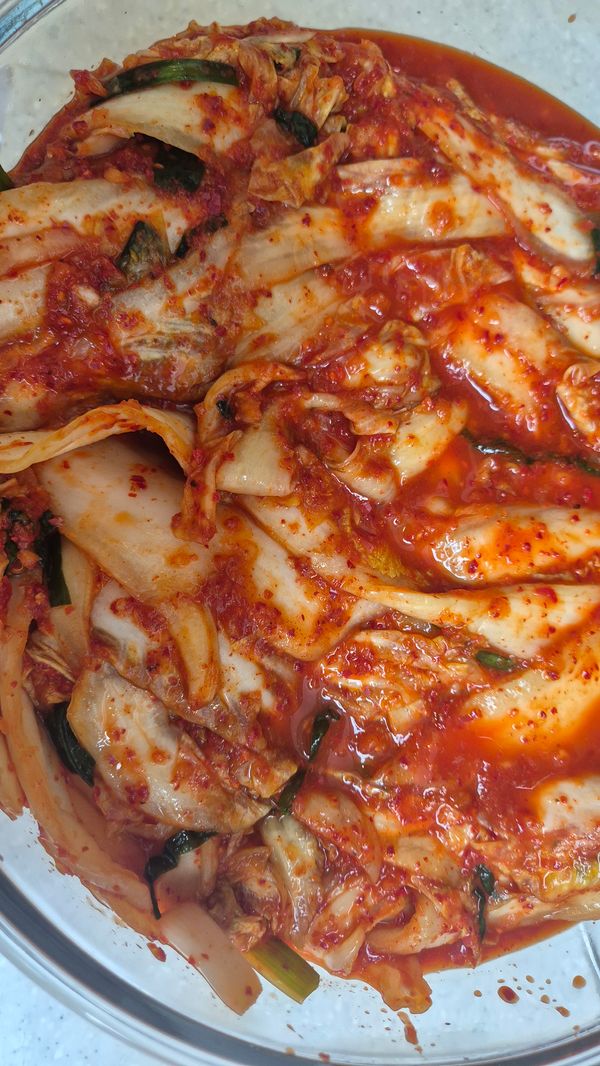 겉절이 느낌이면서도 시간이 지나면 더 맛있게 숙성될 것 같아서 기대됩니다.