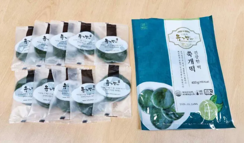 쫀득한 식감과 은은한 쑥 향기를 느낄 수 있는 쑥개떡입니다. 국산 무농약멥쌀, 국산 쑥, 국산 쑥가루, 정제소금으로 건강하게 만들었어요.