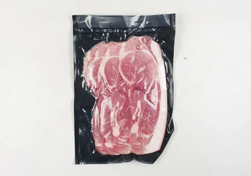 진공을 하면 산소가 차단되어 겉포장에 원육 색깔이 어둡게 비칩니다. 이는 포장 개봉 후 어느 정도 원래 색상으로 돌아옵니다. 또한 개봉 후 진공포장 특성상 밀봉되어 있다가 핏물 냄새가 한 번에 퍼져 잡내로 오해하실 수도 있습니다.