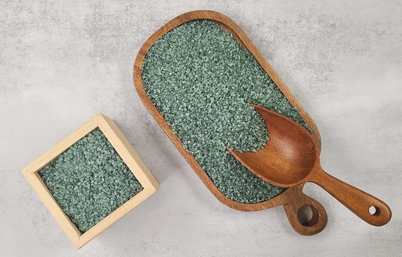 일반미에 클로렐라 분말을 입힌 제품으로 쌀알의 단면은 일반미와 동일하게 백색이며 세척할 경우 클로렐라 성분이 물에 씻겨나갈 수 있으니 씻지 말고 바로 밥을 지어 드시면 됩니다! 정말 간편해요.