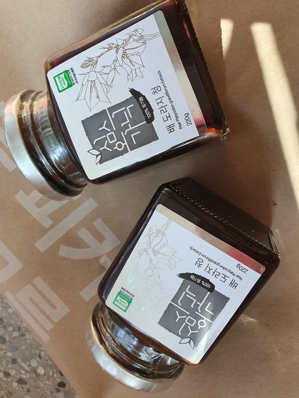 오로지 배·도라지·대추·꿀만 넣어 만들었습니다. 물 한 방울 들어가지 않아 진한 맛과 색을 자랑해요. 첨가물을 일절 넣지 않아 더 믿고 드실 수 있어요.