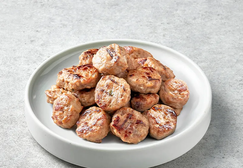 도톰한 두께로 빚어낸 한 입 크기의 떡갈비에는 풍부한 육즙이 가득해요. 한 입 베어 물면 입안 가득 퍼지는 은은한 단맛과 깊은 감칠맛이 일품이에요. 고기 본연의 담백함이 살아있어 자꾸만 손이 가요.