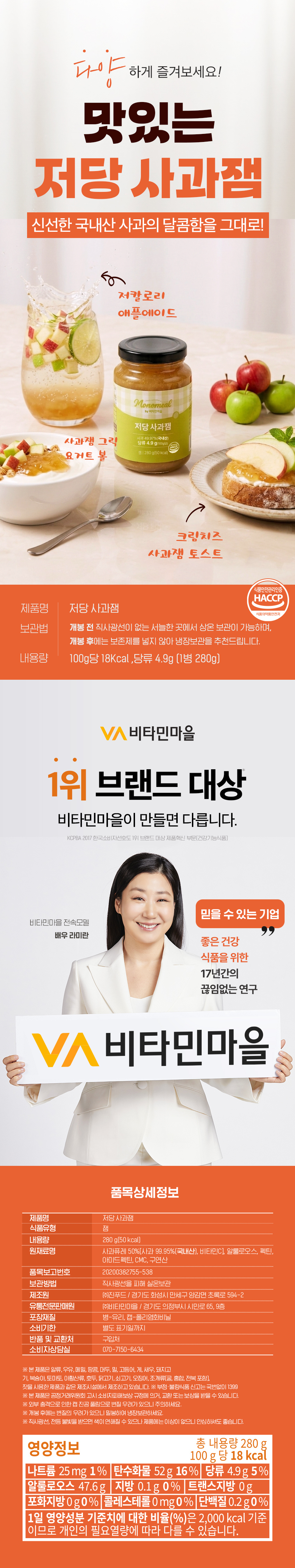 비타민마을 모노밀 저당 사과잼 알룰로스 280g x 1개