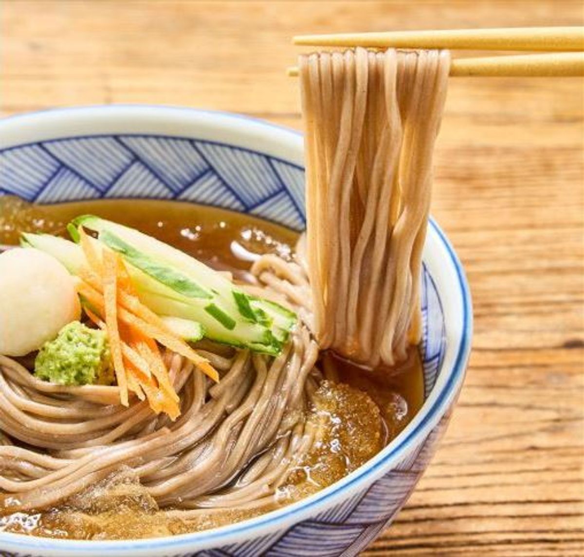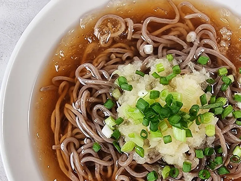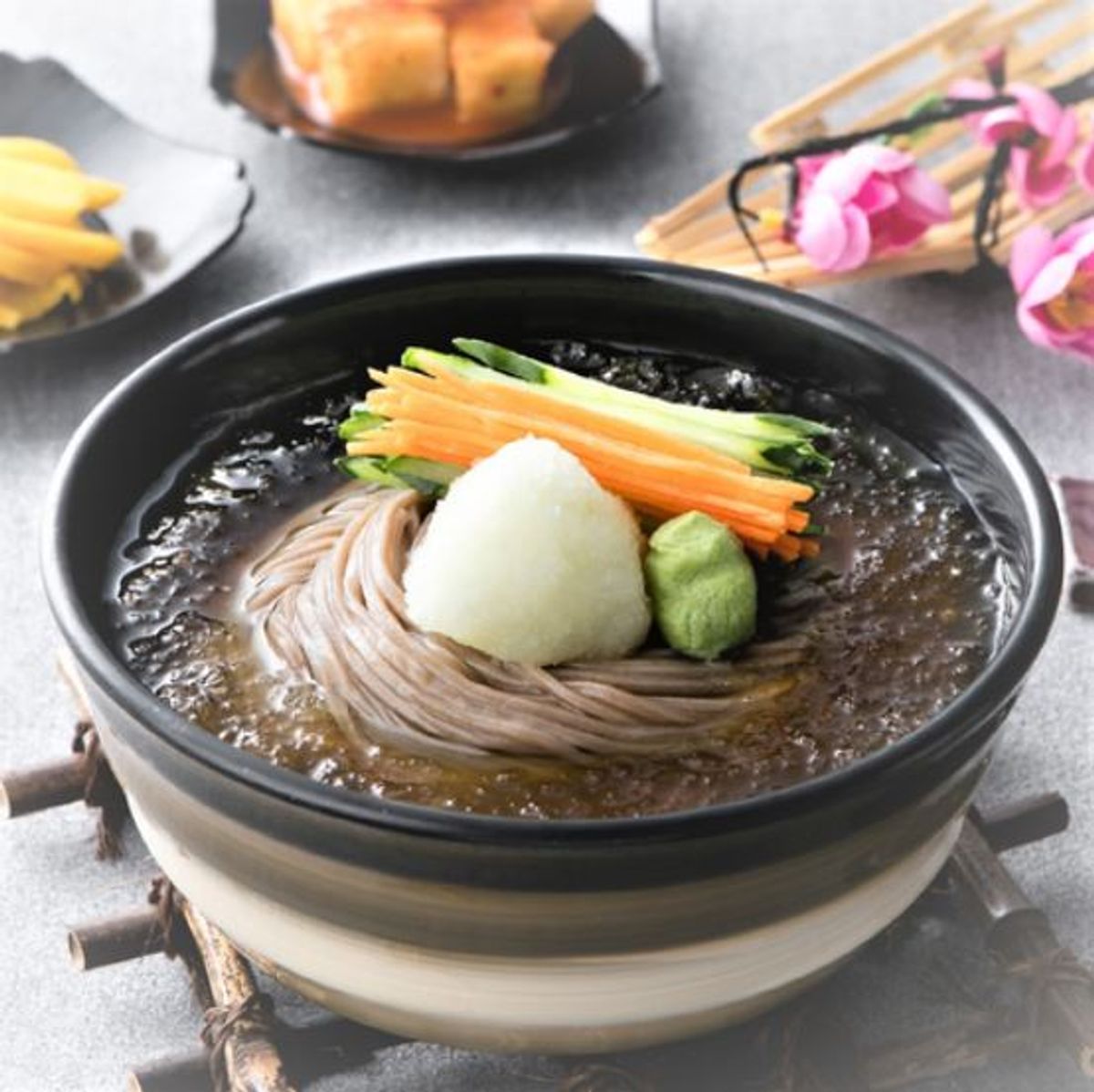 4. 면을 담은 그릇에 육수를 넣고 무즙, 와사비 등 고명을 취향껏 올려 주세요.