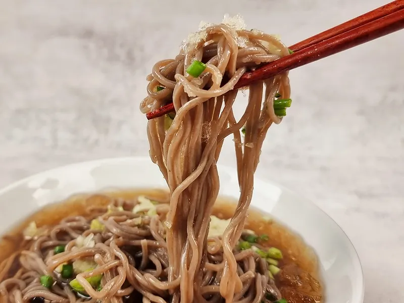 건조하지 않은 생면이라 부드러우면서 쫄깃한 식감이 더욱 좋습니다. 방부제를 넣지 않고 최적의 비율로 반죽해 믿고 드실 수 있는 건강한 면이랍니다. 씹으면 씹을수록 느껴지는 진한 메밀향이 일품이에요👍
