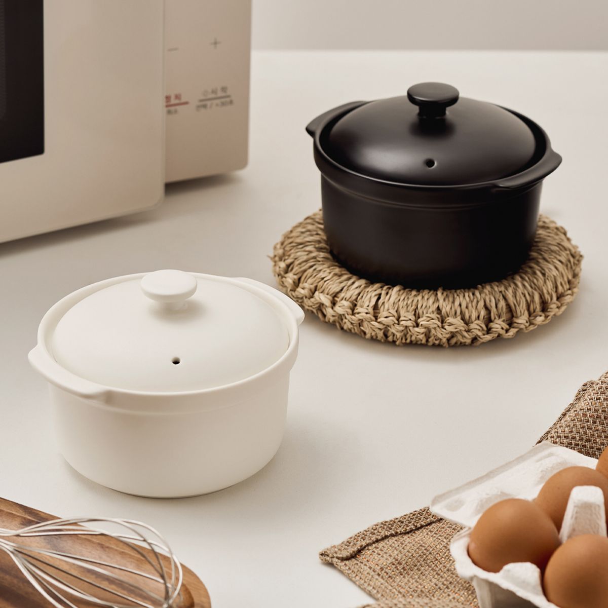 세라믹으로 만든 미니 전자레인지 오븐 냄비(화이트/블랙)