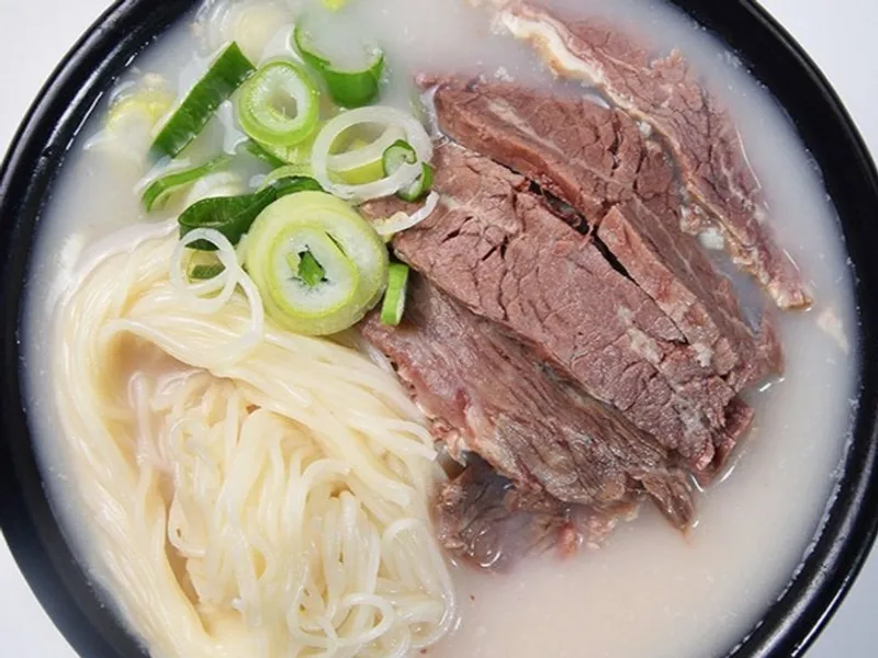 국내산 사골과 소고기만을 사용해 48시간 정성껏 고아 낸 깊은 맛! 잡내 없이 깔끔하고 입안에 퍼지는 진하고 묵직한 감칠맛이 좋아요. 하얗고 뽀얀 국물에 숟가락을 담는 순간, 50년 전통이 만든 깊고 따뜻한 맛이 전해집니다.