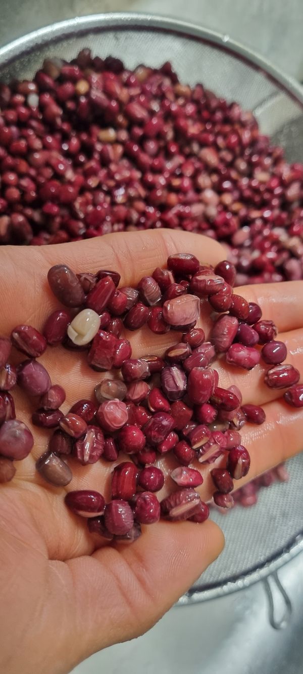 어제 팥밥해 먹고, 내일 오곡밥에 넣으려고 삶아 두었어요. 국산팥이라 고소하고 너무 맛있네요.