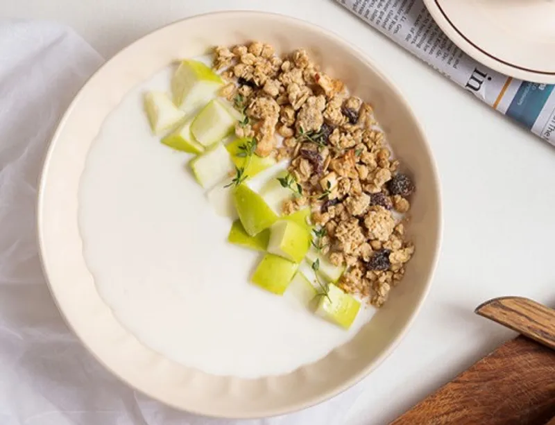 담백하게 그냥 먹어도 맛있지만 과일이나 잼, 시리얼, 견과류 등을 넣어 먹으면 더욱 다채롭게 즐기실 수 있어요. 우리 가족 아침 식사, 건강하게 해결하세요.