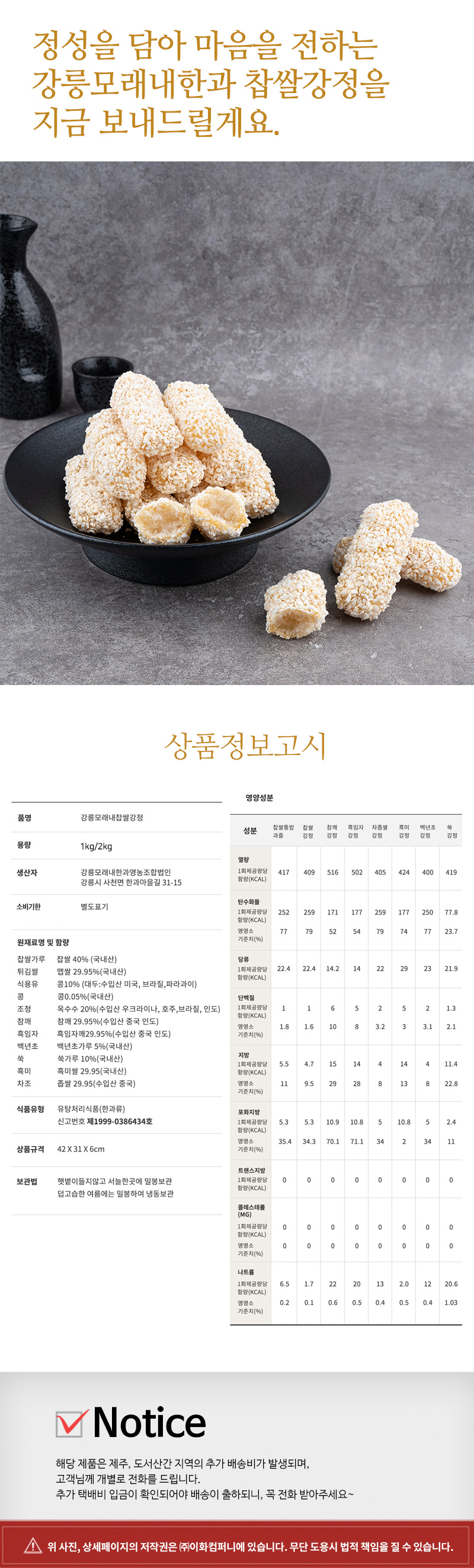 [강릉모래내한과] 강릉사천 모래내한과 찹쌀강정 실속세트 1kg