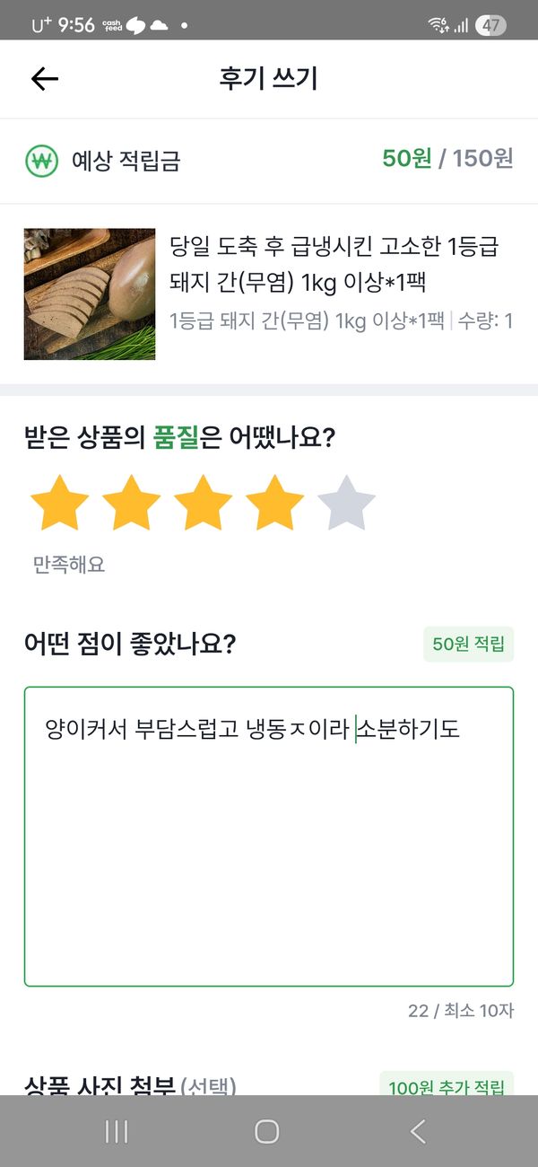 옵션: 1등급 돼지 간(무염) 1kg 이상*1팩
