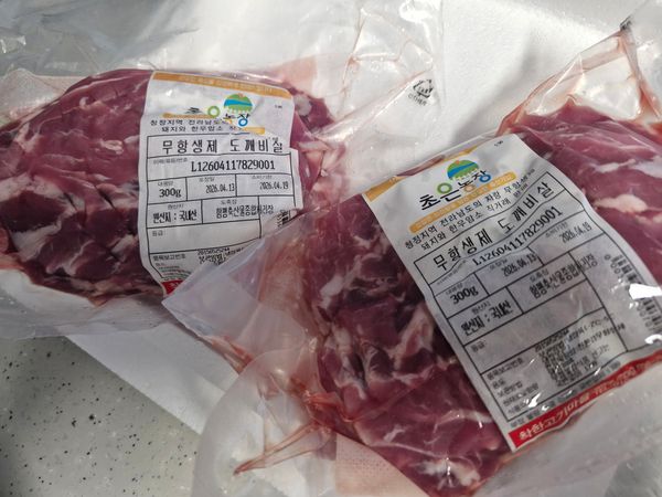 도깨비살? 처음 먹는듯한데 가끔 돼지찌개 전지 사서 쓰는데 이렇게 맛있는 살이 있네요 지방이 거의 없어서 돼지고기라 팬에 굽는데 기름이 안나오는중에 오일 둘러서 굽었고 사뭇 소고기 식감이라 스테이크처럼 구을까 했는데 속까지 익히기에 기름기가 없어서 도중에 커팅해서 구웠는데 참 담백하고 맛있었어요 돼지 한마리에 200g정도 나오는 특수부위다 보니 따로 판매는 안하고 여러개 섞어서 판매해야 할듯 한데 도깨비 살만 1kg사고 싶을 정도로 맛에서 만족했어요 양념 필요없고 소금 살짝 뿌려 굽어서 밥이랑 먹었어요